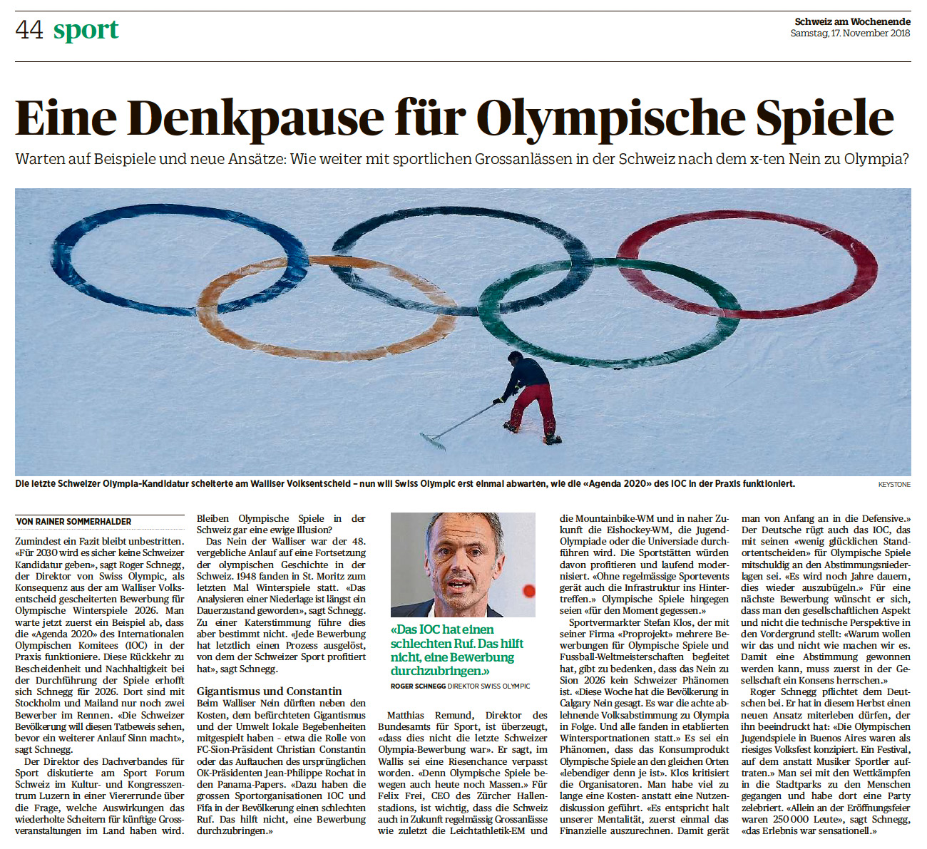 2018: Seit den Olympischen Winterspielen in Turin 2006 zeigt sich die fehlende Sinnhaftigkeit von solchen Sportgrossveranstaltungen im Alpenraum. Stefan Grass, Leiter des Komitees Olympiakritisches Graubünden, der seit 18 Jahren die Kandidaturen für Olympische Winterspiele in Graubünden für 2010, 2014, 2022 und 2026 erfolgreich bekämpfte, zieht Bilanz.