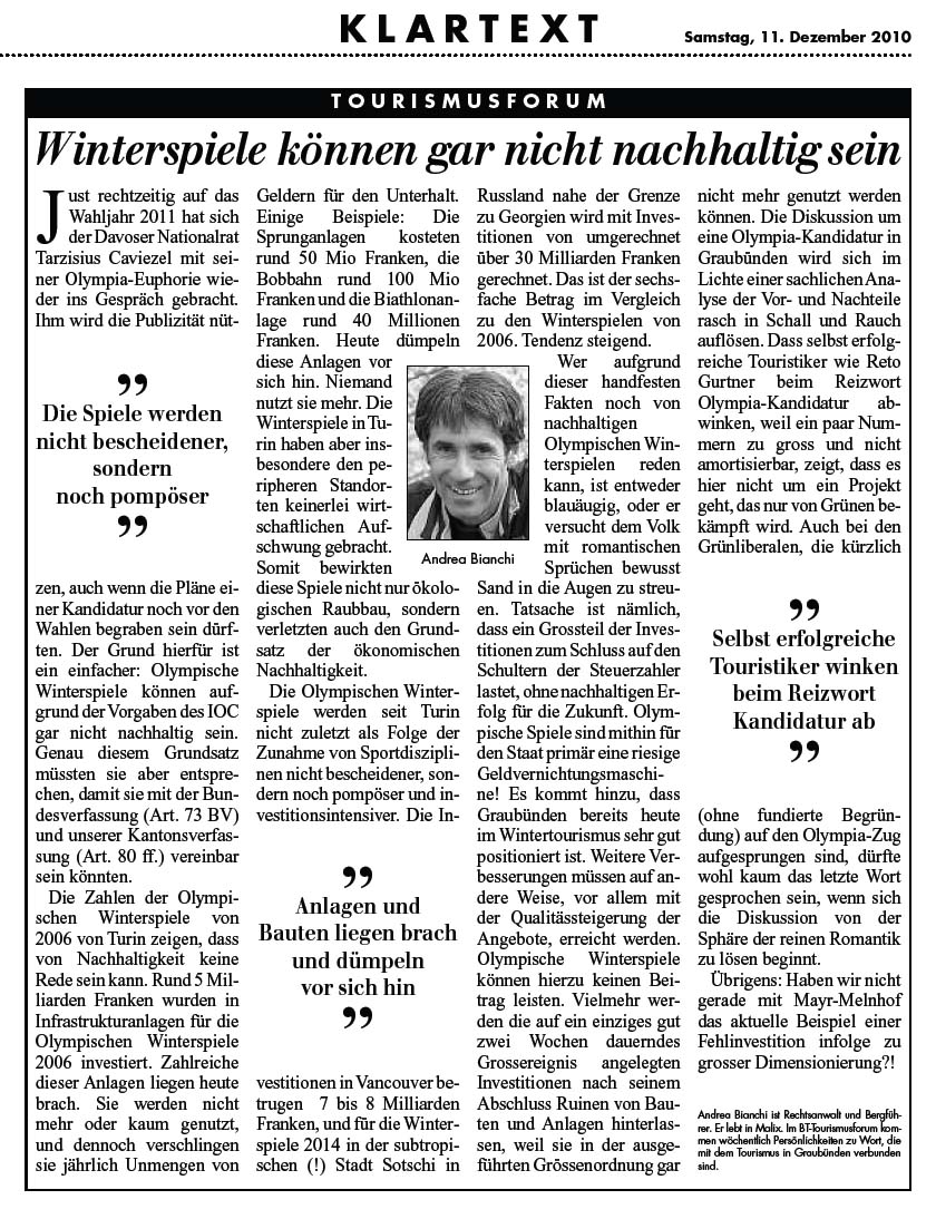 11.12.2010 Klartext von Andrea Bianchi im Bündner Tagblatt