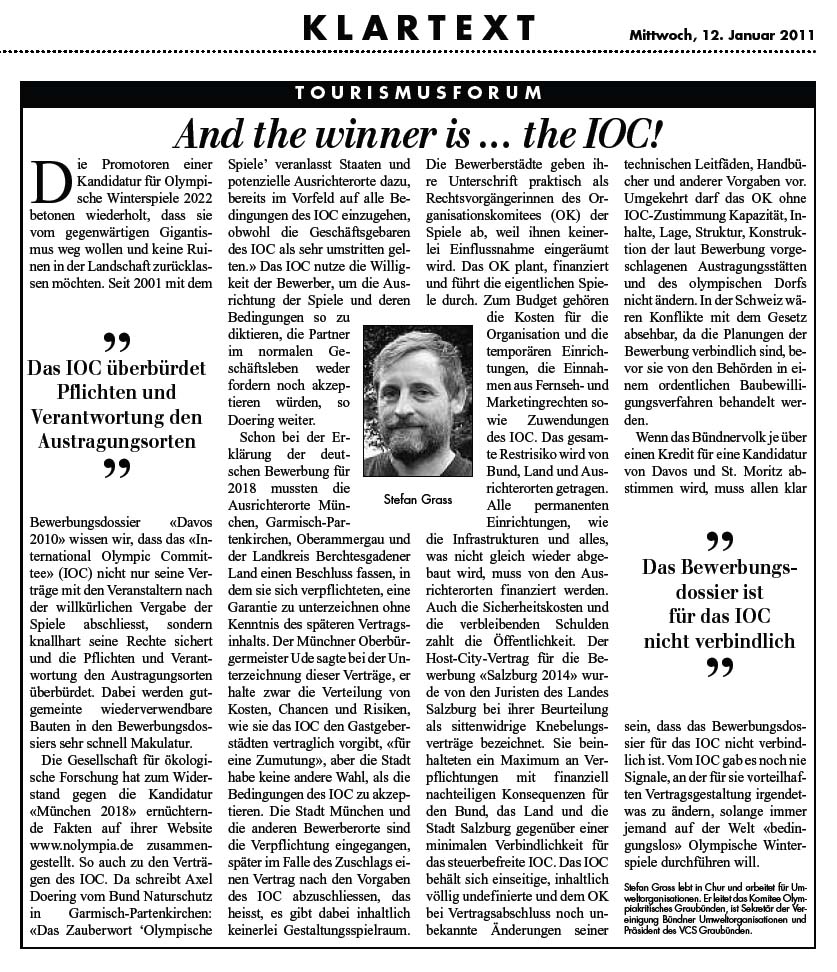 12.01.2011 Klartext von Stefan Grass im Bündner Tagblatt