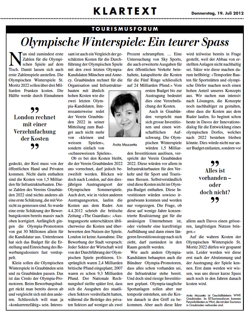 19.07.2012 Klartext von Anita Mazzetta im Bündner Tagblatt