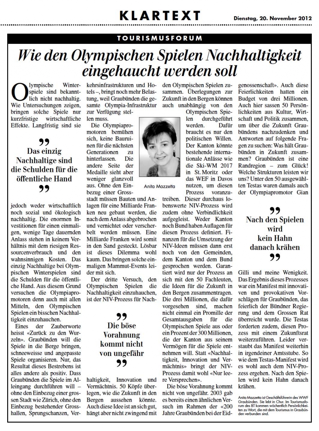 20.11.2012 Klartext von Anita Mazzetta im Bündner Tagblatt
