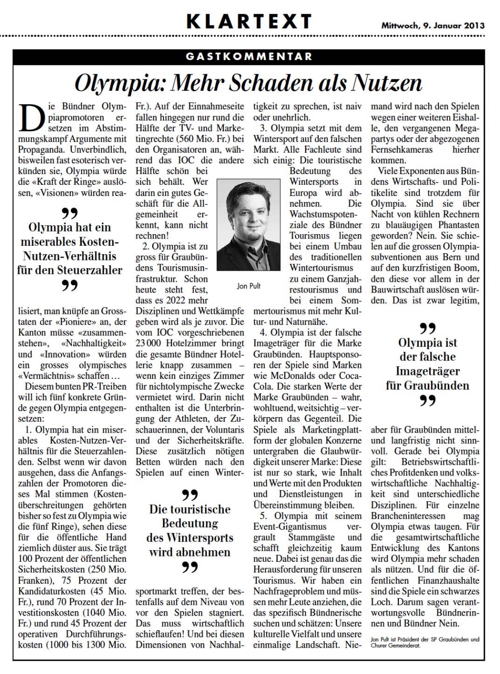 09.01.2013 Gastkommentar von Jon Pult im Bündner Tagblatt