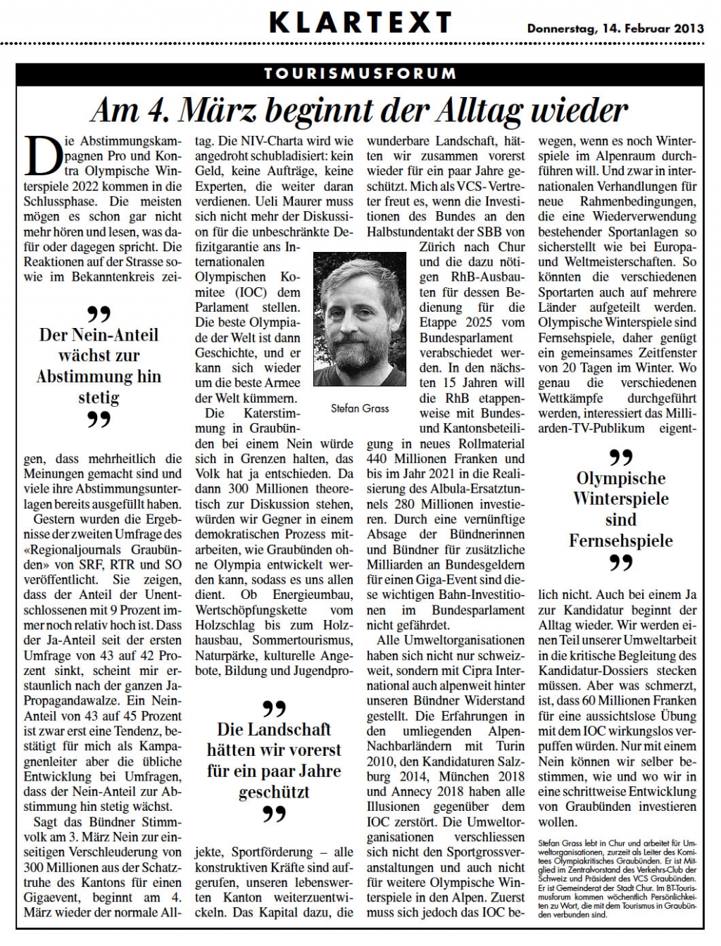 14.02.2013 Klartext von Stefan Grass im Bündner Tagblatt