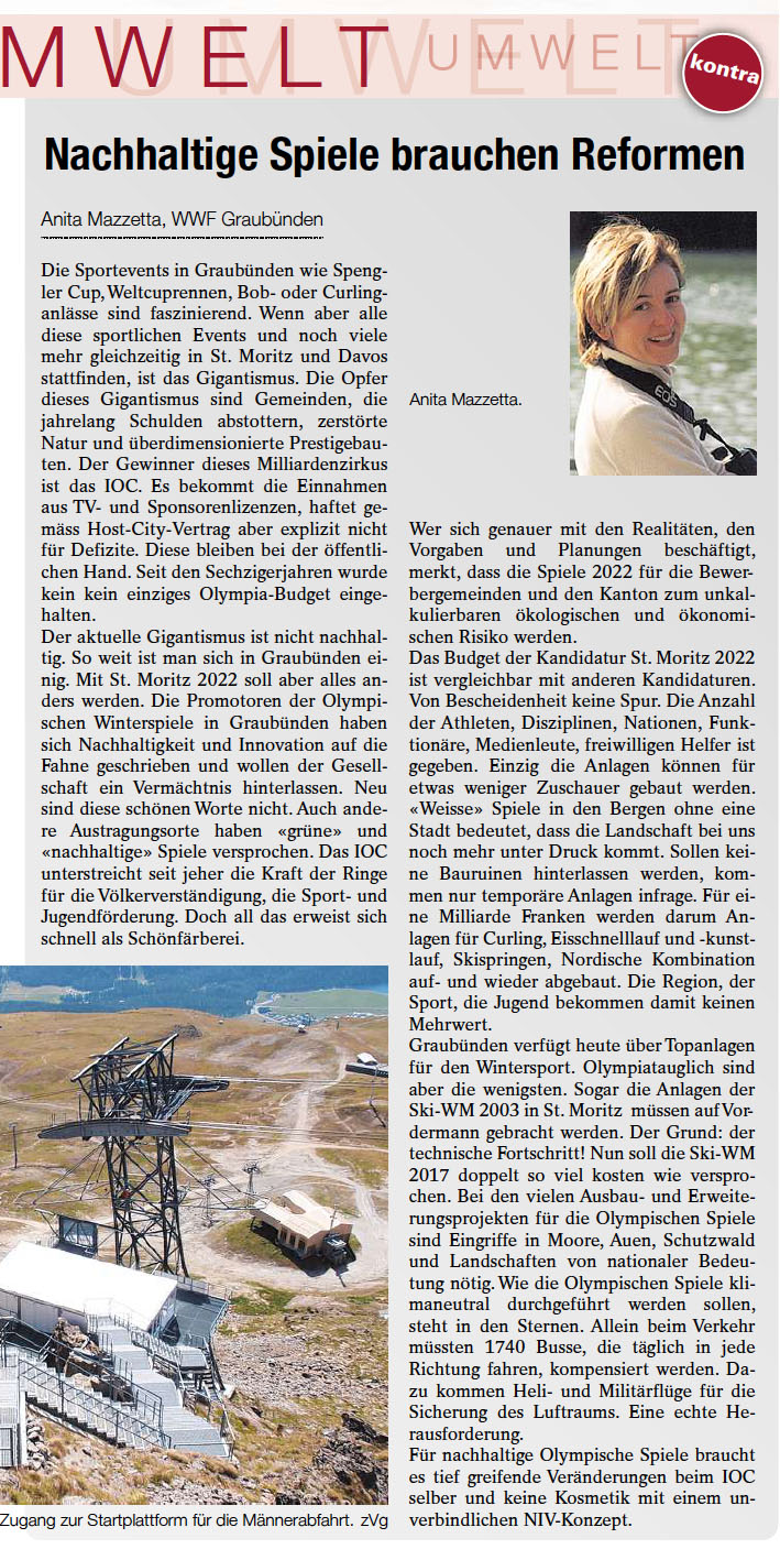 11.01.2013 Zur Umwelt von Anita Mazzetta in der Davoser Zeitung