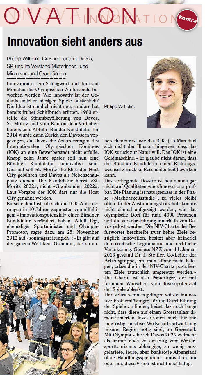 25.01.2013 Zur Innovation von Philipp Wilhelm in der Davoser Zeitung