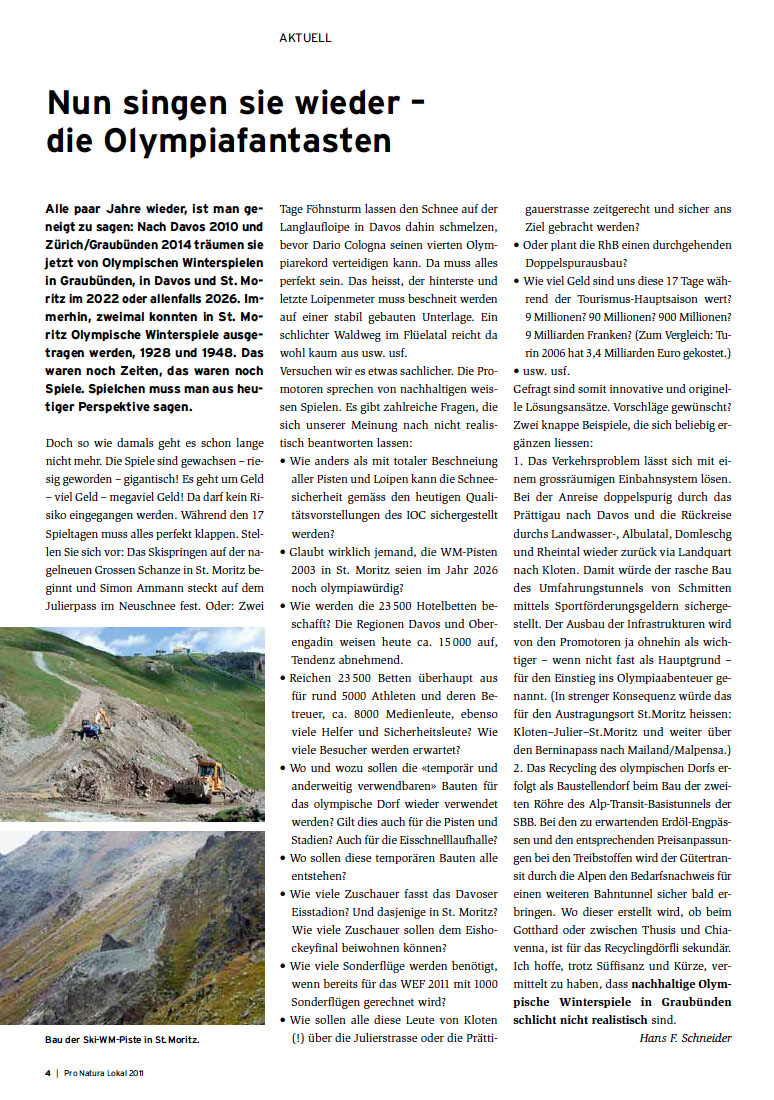 März 2011 Aktuell von Hans F. Schneider im Pro Natura Regio 2/11